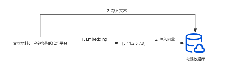 索引是通过 Embedding 将⽚段⽂本转化为向量 ,然后将⽚段⽂本和对应的向量存储在向量数据库中的过程。