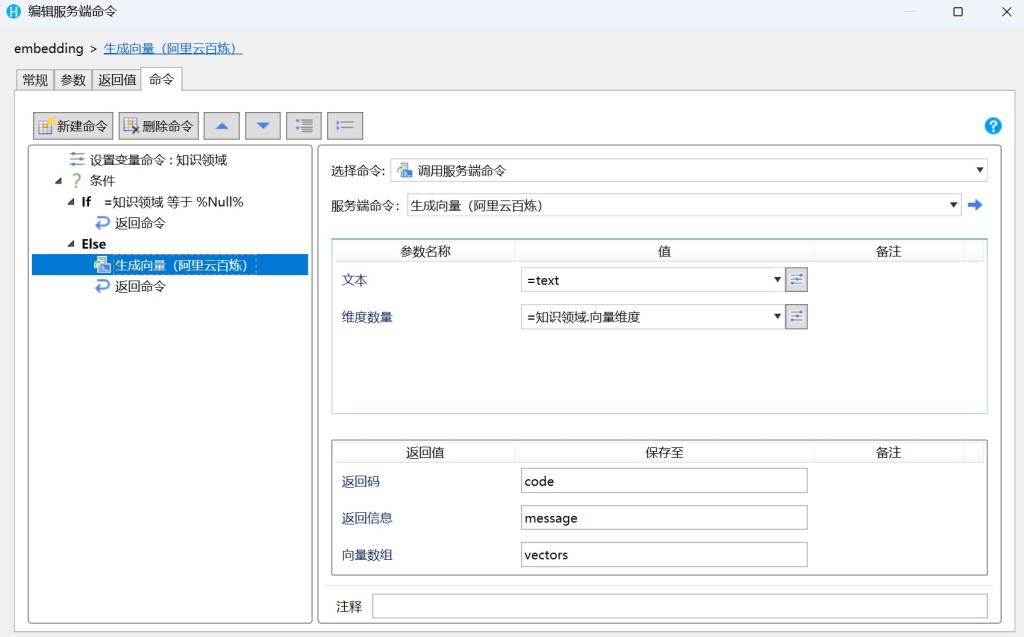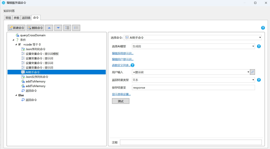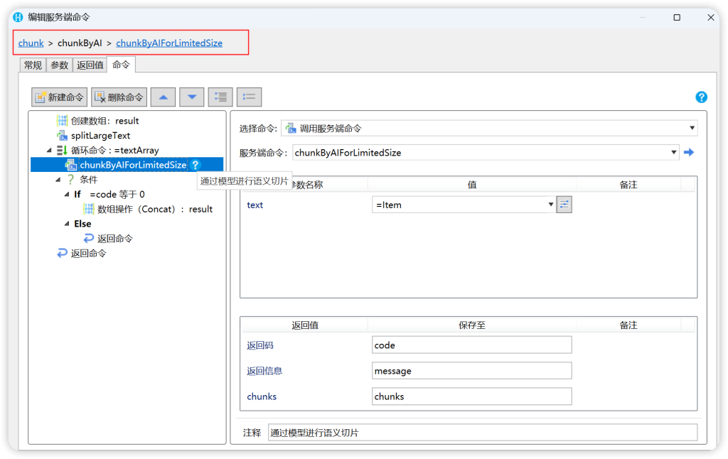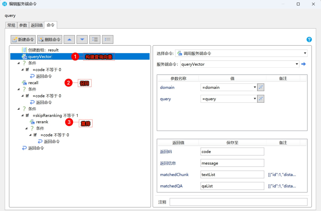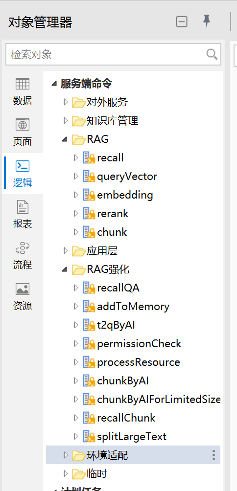 RAG 所有的实现逻辑均维护在活字格的「逻辑 服务端命令」中。