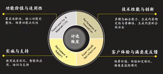 实施与支持维度包括使用成本优化:关注部署、运行及维护生成式AI系统的全周期成本,包括硬件资源消耗、算法迭代费用及人力投入,关注轻量化模型、云原生架构等降本方案,以提升技术普及率和性价比。智能体应用:关注智能体在模拟人类决策、自动化流程中的实际效果,验证其在客服、运营等场景中的响应效率与准确性,以及对业务流程的优化贡献,关注智能体能力及其技术价值转化。培训与支持:关注用户的理解与操作门槛,关注厂商对客户实施建设后的持续赋能的资源和服务支持、实时技术支持及案例库,降低技术应用的复杂性并加速落地进程