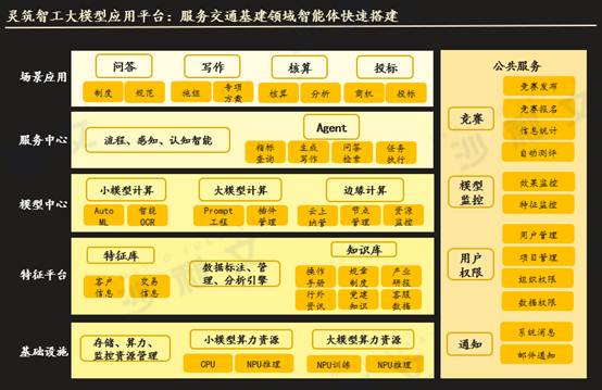 中关村科金与宁夏交建联合推出全国首个交通基建大模型“灵筑智工”,聚焦交通基建垂直领域,精准匹配施工、核算、投标等关键业务场景,显著提升目标达成效率与企业战略协同效益。基于得助大模型平台,通过上万份行业规范与工程技术文档训练,实现模型专业性提升,并构建覆盖知识问答、文档写作、报表生成、数据分析、智能投标等智能体平台,满足交通基建行业对专业智能理解、高效文档处理与智能决策支持的迫切需求。