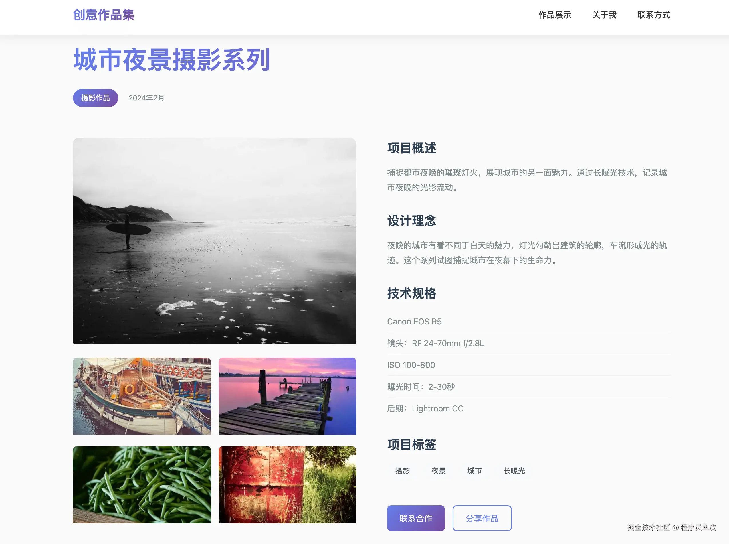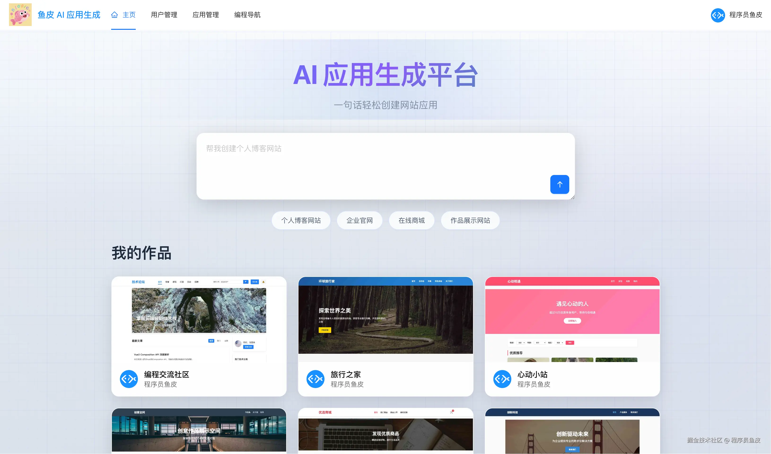 然后依次启动后端和前端项目,输入提示词,比如让 AI 制作一个精美的作品展示网站: