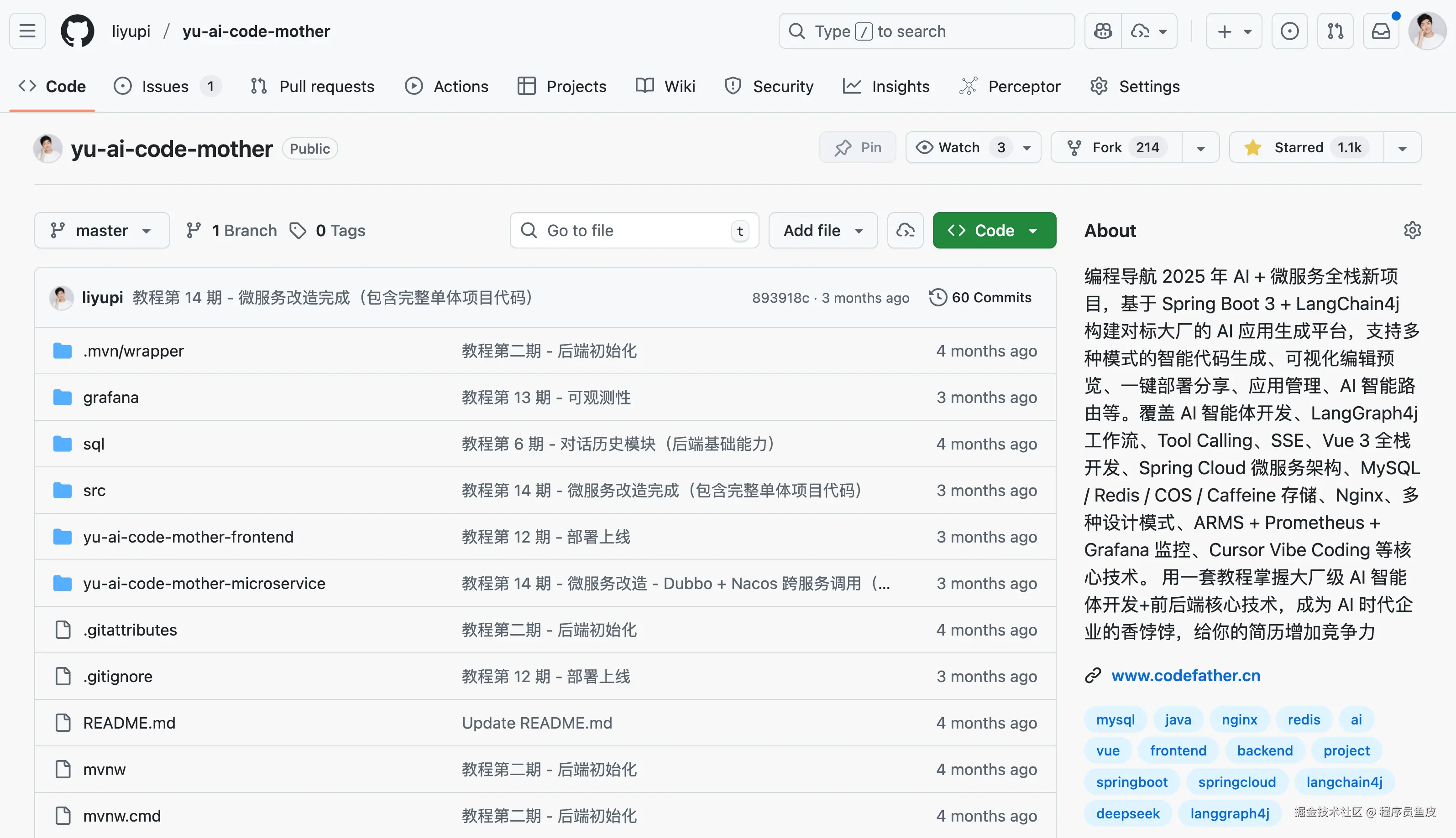 以我当时带大家从 0 开始做的、对标大厂的 AI 零代码生成项目 为例,这个项目使用 Java 主流的 AI 应用开发框架 LangChain4j。