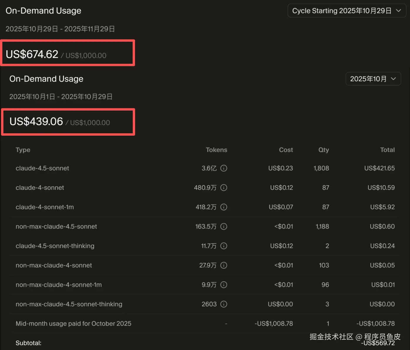 先说说第一个场景,像我们团队虽然也在用 Cursor 去处理复杂任务,但是前段时间刚刚分享过账单,价格真是太贵了,才一个多月就花了 1 万多!我整个人都麻了。。。
