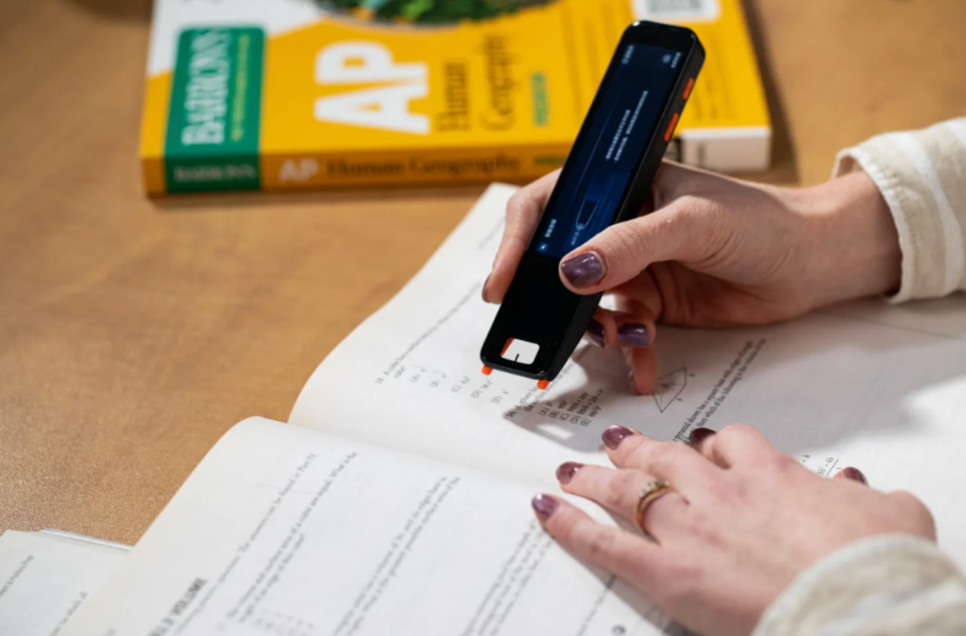 视频中的设备通常被称为“AI Smart Pen”或“ChatGPT Pen”,造型上类似国内用户熟悉的词典笔,透明部分的扫描头负责识别纸面文本,中间为彩色触控屏,侧面按键便于快速操作。
