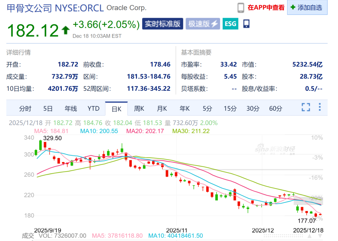 但进入年末,随着投资者逐渐将目光从“故事规模”转向“兑现这些承诺所需付出的成本”,甲骨文股价开始回吐此前全部涨幅。