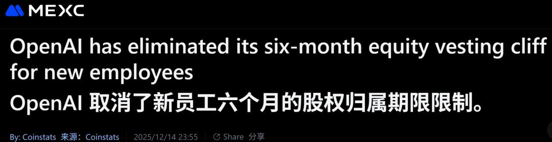 现在,这个逻辑被彻底打断了。取消Vesting Cliff后,新员工拿到的更像是一份「零风险试用合同」。