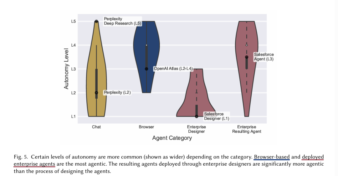 这份报告里用了一个目前最清晰的Agent自主度分级框架,五个等级: