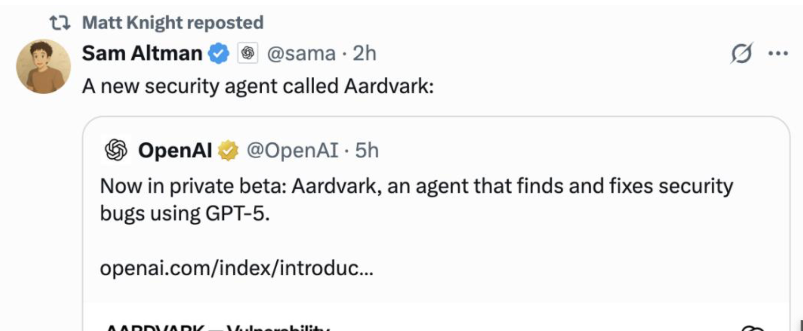 工具库 2025年11月4日 由 Tariaqin · Published 2025年11月4日 · Last modified 2025年10月31日 全自动读代码找漏洞写修复 一个制造安全漏洞的Agent,也有一个修复安全漏洞的Agent。 A...